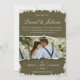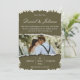 Ce Faire-part de mariage intemporel Save The Date présente un design photo romantique en papier déchiré encadré d'élégants motifs floraux. La typographie classique ajoute une touche de sophistication, tandis que la palette de couleurs vert olive et blanc crée un look moderne, d'inspiration nature, parfait pour les mariages du jardin, du bois ou de la rustique. La partie supérieure comprend un message et des noms personnalisables en écriture stylisée, tandis que la partie inférieure vous permet de présenter une photo personnelle pour une touche chaleureuse et mémorable. La bordure florale blanche ajoute une élégance vintage à cette disposition magnifiquement équilibrée. Personnalisez facilement tout le texte et téléchargez votre photo fiançailles préférée. Parfait pour les couples à la recherche d'un doux, romantique mais raffiné, sauvez la date.