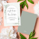 Ce design est composé d'un élégant modèle faire-part de mariage vert simple, avec une feuille de feuillage de verdure eucalyptus, un vert de laine de mousse botanique, un style classique de jardin formel traditionnel, un style stylisé de script de calligraphie tendance, un classique de typographie traditionnelle, un simple monogramme sur le dos, classe moderne minimaliste, aquarelle dessinée à la main, classe minimaliste minimaliste minimaliste