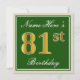 Invitation Elégant, Vert, Faux Or 81ème Anniversaire + Nom