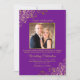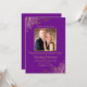 Cette belle faire-part de mariage est élégante, simple et élégante. Il présente des lettres en écriture or sur un arrière - plan violet avec un faux feuillage floral dans chaque coin. Le design inclut votre photo d'image dans un cadre doré avec tous les détails importants. Le dos a un code QR personnalisable et note de détails afin que vous puissiez diriger vos invités vers un site Web pour des informations et RSVP.