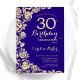 Purple Gold Floral 30e anniversaire de fête Invitation. Design élégant avec des roses, fausse feuille d'or et police de script de typographie. Carte invitation tendance parfaite pour une célébration anniversaire élégante. Peut être customisé à n'importe quel âge. Invitations Zazzle imprimées ou téléchargement instantané modèle imprimable numérique.