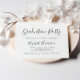 Elégante carte à plat d'invitation de remise de diplômes avec la photo du diplômé superposée avec "diplômé" dans un mince script blanc moderne et leur nom et année de classe en simple typographie blanche. Au verso, ajoutez les détails de la fête de remise de diplômes.