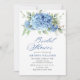 Invitation Elégante aquarelle bleu Hydrangea FÊTE DES MARIÉES