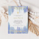 Ces somptueuses et élégantes invitations Baptême ou Christening présentent des traits d'aquarelle à la mode dans les tons bleu clair et foncé, avec des confettis faux or parties scintillant et une croix d'or.