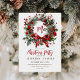 Elégante carte de vacances élégante avec la couronne de Noël festive en aquarelle et la police classique et manuscrite.