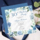 Invitation Elégante Blue Rose Floral Frame 30e fête d'anniver