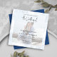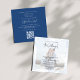 Ce design comprend une élégante calligraphie classique photo code QR modèle invitation RSVP, avec un simple modèle de carré floral bleu, un site internet réponse de l'invité, une classe de téléchargement numérique moderne, un feuillage vert fleur bleu minimal, un jardin boho style romantique doux, un script de calligraphie typographie lettering, avec un monogramme et un script arrière, avec un effet de superposition de vellum photo transparent, un simple minima design minimaliste et tendance