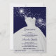 Une robe blanche sur un arrière - plan étoilé bleu nuit ciel, ces invitations de fête d'anniversaire de Quinceañera sont parfaites pour n'importe quelle princesse de 15ème anniversaire. Disponible en robes CORALES, ROUGES et BLANCHES. Voir PLUS de designs dans notre magasin.