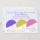Invitation nuptiale colorée de douche, avec un arrière - plan rayé bleu et des parapluies colorés d'amusement alignés sur le fond. Customisez le texte en couleurs, le style, et la taille, sur l'avant et le dos de cette invitation mignonne, d'adapter à vos besoins de partie.