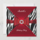 Invitation Elégante fête d'anniversaire Zebra Red Black Diamo