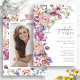 Invitation élégante du Fleur sauvage Graduation Party. Célébrez les réalisations de votre diplômé avec cette élégante invitation, ornée d’un bouquet de fleurs sauvages aux tonalités de bijoux dans les tons violet, magenta, bordeaux, rose rousse, bleu poussiéreux et vert sauge. Le script de calligraphie gracieux offre une touche raffinée et élégante, tandis que le dos offre de l'espace pour une seule photo chère de votre diplômé. Customisez facilement le libellé, les polices, les tailles et les arrière - plans pour créer un design personnalisé qu’ils chériront. Capturez votre voyage avec style - faites votre invitation parfaite dès aujourd'hui !