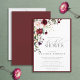 Une invitation à la douche nuptiale moderne et élégante, avec un bouquet de fleurs bordeaux et rose pâle et une végétation botanique, bordée d'un riche rouge bordeaux. Personnalisez vos détails de douche nuptiale en noir doux, accentué par une belle calligraphie moderne lettrée à la main. Copyright Invitations élégants, tous droits réservés.
