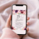 Elégante invitation de fête de 75ème anniversaire avec "75 & Fabulous" dans un script chic et bouquets d'aquarelle de fleurs rouge bordeaux, rose rousse et violet avec une végétation de sauge clair.