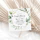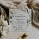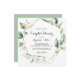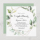 Cette invitation à la douche aux couples de verdure dorée géométrique est parfaite pour une wedding shower moderne. Le design est orné de feuilles d'eucalyptus verts peints à la main et ornés d'un cadre géométrique doré.