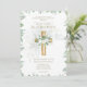 Roses blanches, Croix d'or, thème feuille verdoyant. Elégant chrétien moderne, faire-part de mariage de foi catholique avec texte champs de modèle des deux côtés pour vous inclure cérémonie mariage, réception, rsvp, registre de cadeaux bref programme de mariage. *** Elegante y moderna invitación de boda de fe católica y cristiana con campos de plantilla de texto en ambos lados para que usted incluya la céréonia de boda, récepción, rsvp, registro de regalos breve programa de bodas.