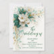 Invitation Elégante Mariage Vert Blanc Or Fleurs