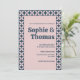 Invités Invitations à votre fête rétro-chic avec notre Faire-part de mariage rétro géométrique du milieu du siècle de Blush Navy. Doté d'un motif géométrique captivant dans une palette de couleurs sophistiquée, ce design allie charme vintage et élégance moderne. Parfait pour les couples à la recherche d'une ambiance mariage intemporelle et branchée. Explorez l'ensemble de la collection pour la coordination de la papeterie pour compléter votre look mariage.