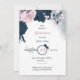 Elégantes fleurs bleu marine et rose et quelques belles feuilles florales invitation à la douche