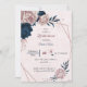 Elégant bleu marine et rose fleurs et quelques beaux feuilles sur un cadre géométrique invitation à la douche nuptiale Les détails de la parties scintillant sont simulés