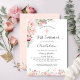 Belle aquarelle fleurie Première communion invitation avec arrangement floral exquis sur le coin supérieur gauche et le champ de fleurs sur le fond de la carte, avec des fleurs dans la pêche délicate, tons rose vif avec détails de parties scintillant d'or rose et la verdure menthe. La carte est de retour dans l'ombre verte de menthe avec détail de fleurs sur le fond. Invitation avec section pour les détails "Cérémonie" et "Réception". Une partie de notre collection "Mint Elegance" mariage et événements.