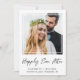 Élégant aménagement ou faire-part mariage privé et réception post mariage ou invitation à la fête. L'avant présente votre photo dans un cadre carré découpé, "heureusement toujours après" écrit dans un script moderne chic, et vos prénoms, date mariage et emplacement dans une simple typographie. Au contraire, entrez l'adresse URL de votre site Web mariage pour créer un code QR pour vos invités à scanner tous les détails et à RSVP en ligne, personnalisez votre faire-part mariage et l'invitation de réception ou de fête et signez vos noms mariés dans un script signature.