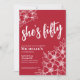 Cinquante Hot Red 50th Birthday Party Invitation. Une invitation amusante mais élégante à la fête du 50e anniversaire avec des fleurs rouges et blanches brillantes pour les jeunes de coeur. Un motif de fleurs ludique encadre une typographie de script "she's cinquante" mélangée avec une police serif plus classique. Célébrez cinquante ans de vie avec ce magnifique design botanique. La partie amusante est que vous pouvez changer TOUTES les couleurs! ! Vous pouvez non seulement modifier les couleurs et la police arrière - plans, mais vous pouvez également modifier les lignes des fleurs. Disponible sous forme d'invitation imprimée ou d'invitation numérique téléchargeable que vous pouvez envoyer par e-mail ou avoir imprimé localement !