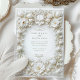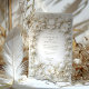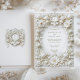 Célébrez votre mariage avec style grâce à cette invitation raffinée avec tulipes blanches et feuillage complexe. Le design est orné d'un cadre floral baroque imitation gaufrée, dégageant une élégance intemporelle. L'arrière - plan blanc crémeux et les détails délicats créent un aspect sophistiqué et luxueux, parfait pour des célébrations formelles mariages ou romantiques. Veuillez noter que les effets en relief font partie du design imprimé et ne comprennent pas de véritables textures surélevées.