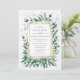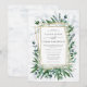 Élégante verdure, un beau design représentant une couronne dense et succulente de feuillage vert foncé autour d'un cadre géométrique. Le cadre subtil révèle des éléments de verdure en dessous, montrant un étalage botanique qui pointe à travers. Cette suite d'invitation de mariage est parfaite pour toutes les saisons, avec une gamme de styles et de couleurs disponibles.