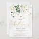 Élégante verdure Blanc Floral Gold Cross Baptism Invitation