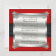 Brillamment sophistiqué et élégant Quinzième Anniversaire de Mariage faux satin rouge et ruban satin noir avec diamants et rubis dans un style à grille qui se poursuit au dos. Le dos a un faux carton argenté et nacré superposé monté dans les coins avec les fermoirs rubis et diamant. Création originale de Holiday Hearts Designs (tous droits réservés).