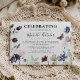 Une élégante invitation "Celebrating the Life of" Funeral / Memorial Service, avec des fleurs sauvages chic boho printemps/été et la verdure botanique. Tout le texte peut être personnalisé en utilisant le modèle fourni.
