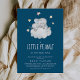 Cet éléphant garçon marine petite invitation baby shower arachide est parfait pour un baby shower simple. Le design moderne comprend un animal moderne et mignon du zoo safari aquarelle dormant sur un nuage doux aux étoiles jaunes scintillantes.