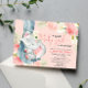 Invitation Eléphant floral doux bébé fille rose pâle crème
