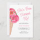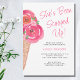 Cette jolie invitation à la douche nuptiale sur le thème de la crème glacée est décorée de fleurs d'aquarelle et d'un cône de crème glacée. Le texte dit : "Elle a été emportée !" dans une typographie rose stylisée. Customisez cette carte en ajoutant vos informations sur la douche. Aquarelle originale © Michele Davies.