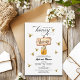 Un élégant design de douche de mariage avec un bocal de miel et un panneau en bois et une élégante calligraphie.