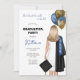 Elle croyait qu'elle le pouvait, alors elle a fait l'invitation d'une fille diplômée. Dispose d'une femme diplômée avec ballons de parties scintillant bleu et or, capuchon de graduation et robe.
