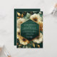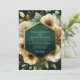 A rich tapestry of deep emerald green foliage surrounds creamy, off-white blooms and hints of gold accents. This design evokes a sense of luxurious, natural beauty with its dramatic floral arrangements and sophisticated color palette. The opulent botanical scene sets a mood of grand romance.