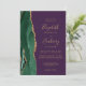 Le bord gauche de cette élégante faire-part de mariage moderne est orné d'une bordure en aquarelle vert émeraude, recouverte d'une parties scintillant en faux or. Le texte personnalisable associe écriture manuscrite dorée, copperplate et polices italiques sur un arrière - plan violet profond. Ajoutez votre photo préférée à l'envers, ainsi qu'un texte supplémentaire et un code QR pour envoyer les invités à votre site mariage.