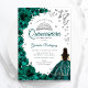 Invitation à la célébration de la Quinceanera, couleur vert émeraude et blanc aquarelle florale. En vedette brune fille en robe de robe de bal, police de script, papillons en argent, rose et tiara. Parfait pour une élégante célébration de glamour de style princesse. Personnalisez avec vos propres détails. Invitations Zazzle imprimées ou téléchargement instantané modèle imprimable numérique.