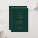Célébrez votre journée spéciale avec cet or vert émeraude tout en un code QR faire-part de mariage. Doté d'un riche arrière - plan vert émeraude, d'une élégante typographie d'écriture or et d'un format tout à fait pratique, ce design moderne allie luxe de tonalité de bijoux et fonctionnalité pratique. Le code QR intégré simplifie l'accès à RSVP et à votre site mariage instantanément. Parfait pour les mariages de automne, les fêtes d'hiver ou les couples qui aiment la papeterie intemporelle bijoux.
