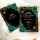 Émeraude verte, or noir Quinceanera invitation de célébration. Caractéristiques, police de script, papillons d'or, roses d'aquarelle et tiara. Parfait pour une élégante célébration de glamour de style princesse. Personnalisez avec vos propres détails. Invitations Zazzle imprimées ou téléchargement instantané modèle imprimable numérique.