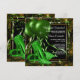 Émeraude verte chaussure haut talon invitation fête d'anniversaire avec de jolies chaussures vert émeraude et ballons sur un élégant arrière - plan noir et or avec des serpentins et des confettis. Ces élégantes invitations vertes pour fêtes d'anniversaire sont facilement customisées pour votre événement en ajoutant simplement vos détails dans le style de police que vous préférez.