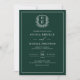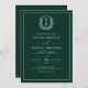 Invitation Emerald Green Leafy Crest Monogramme Mariage éléga