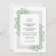 Ce faire-part de mariage présente des vignes feuillues vert émeraude, agrémentées d'une épaisse bordure gris clair.