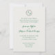 This elegant wedding invitation features a delicate circle of leaves and vines framing your initials at the top, paired with classic serif fonts and romantic emerald script on a soft ivory background for a timeless, refined look.