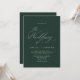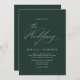 Invitations de mariage classiques avec un script vintage. Police blanche sur un arrière - plan vert foncé contrastant.