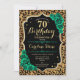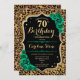 Invitation à la fête du 70e anniversaire. Design vert émeraude floral élégant avec de l'or parties scintillant et des roses. Caractéristiques du poster de animal de guépard léopard et police de script. Idéal pour une célébration anniversaire féminine élégante. Peut être customisé pour n'importe quel âge ! Invitations Zazzle imprimées ou téléchargement instantané modèle imprimable numérique.