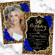 Elégante invitation à 50ème anniversaire avec votre photo au dos de la carte. Décor noir bleu royal avec un empreinte de léopard animal et faux or parties scintillant. Caractéristiques saphir bleu rose, police de script et confetti. Parfait pour une fête anniversaire adulte élégante. Personnalisez avec vos propres détails. Peut être customisé pour n'importe quel âge ! Invitations Zazzle imprimées ou téléchargement instantané modèle imprimable numérique.