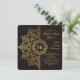 Une invitation luxueuse pour célébrer votre événement des plus officiels. Le fond sombre présente un motif abstrait marron et est surmonté d'une répétition du motif en or. La couronne mise en vedette peut contenir des monogrammes ou une année. Le choix parfait pour impressionner. Vous souhaitez économiser de l'argent ? Imprimez avec les coins carrés de base.