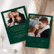 Invitation En Aluminium 2-Photo Emerald Green Gold Script Enregistrer la d